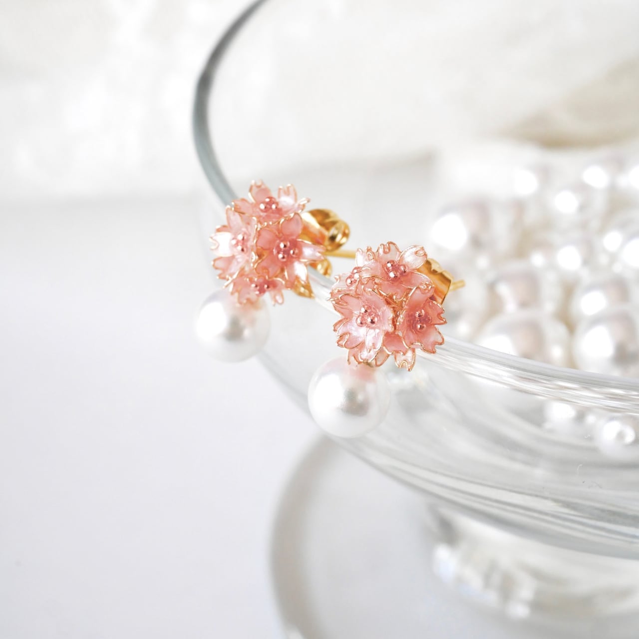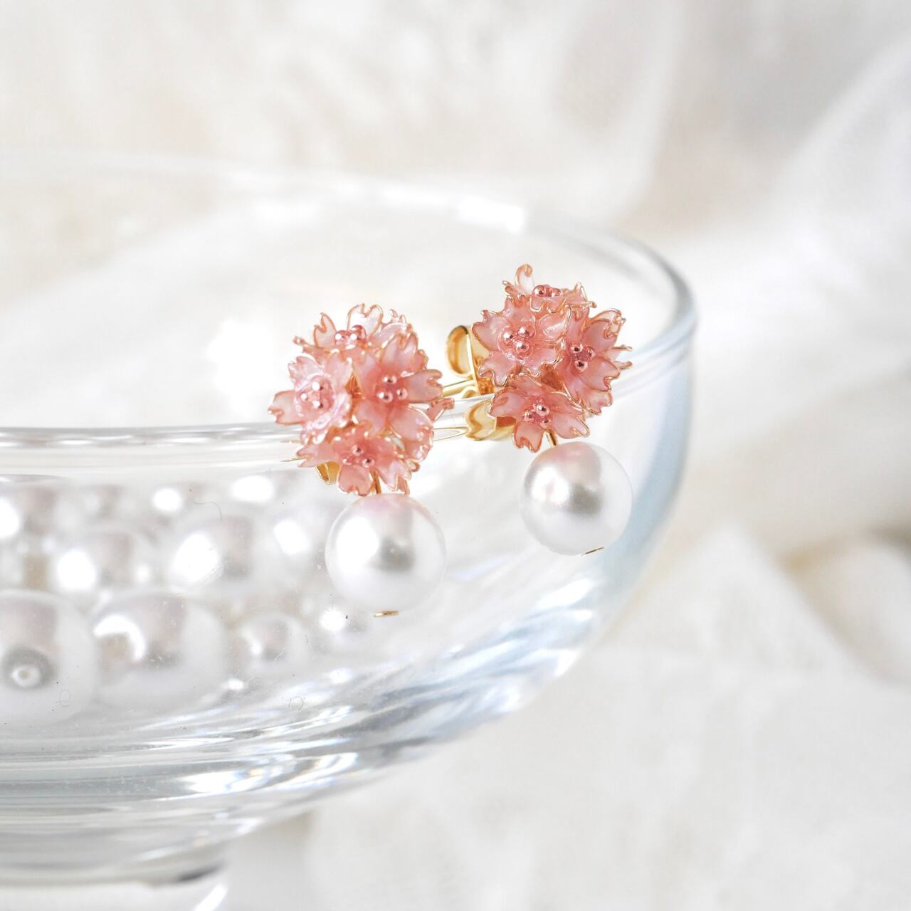 桜パール イヤリング/ピアス ディップアート ディップフラワー