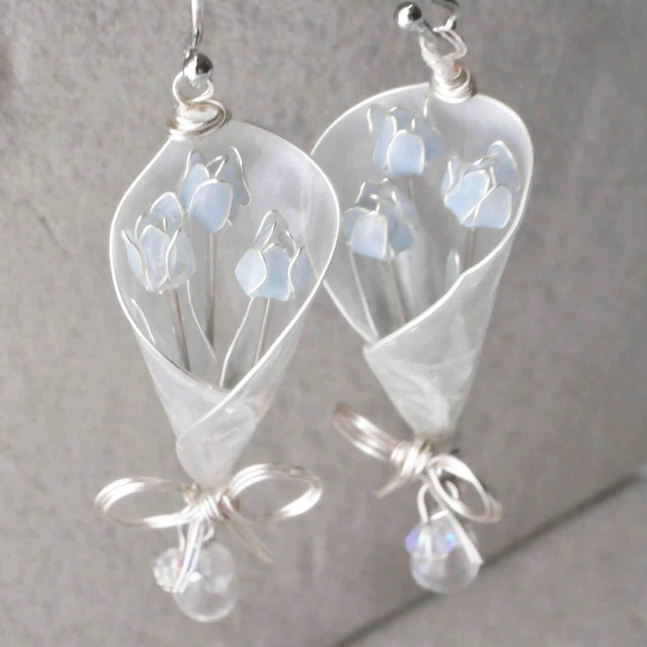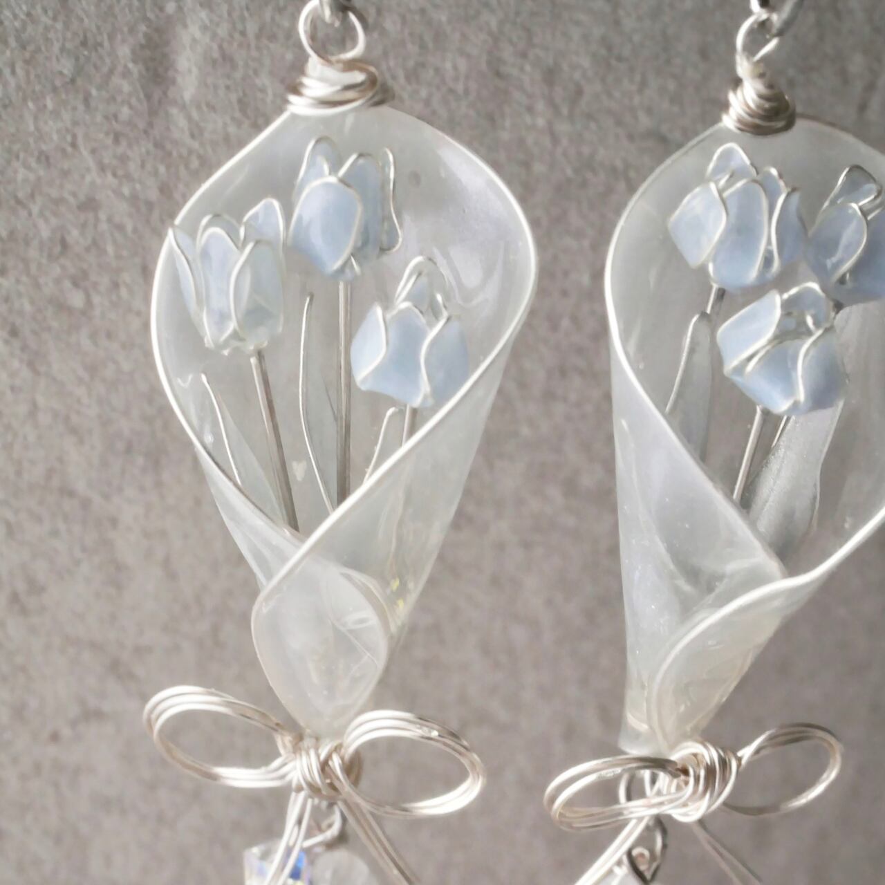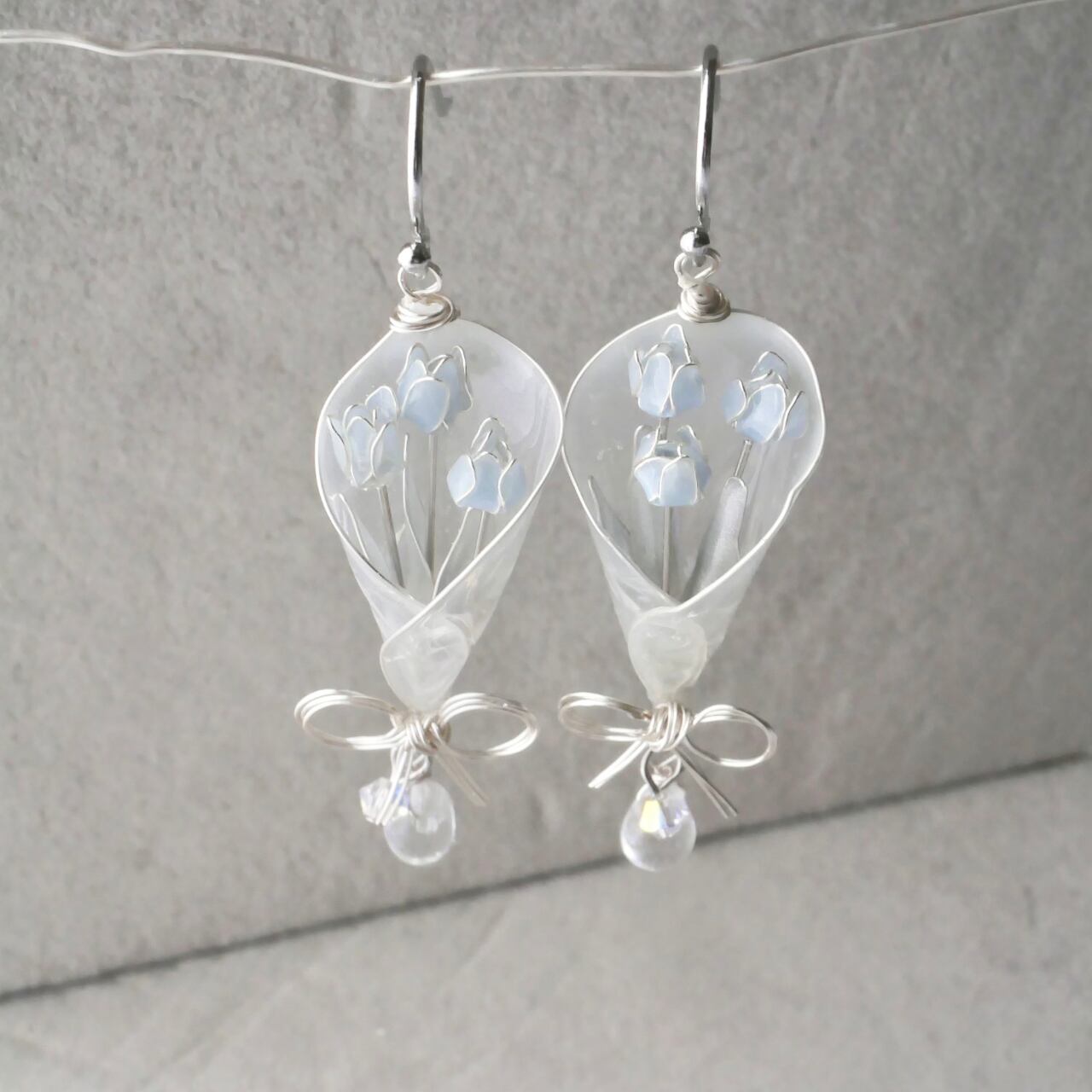 水色チューリップbouquet 花束 イヤリング/ピアス ディップアート ディップフラワー マニキュアフラワー