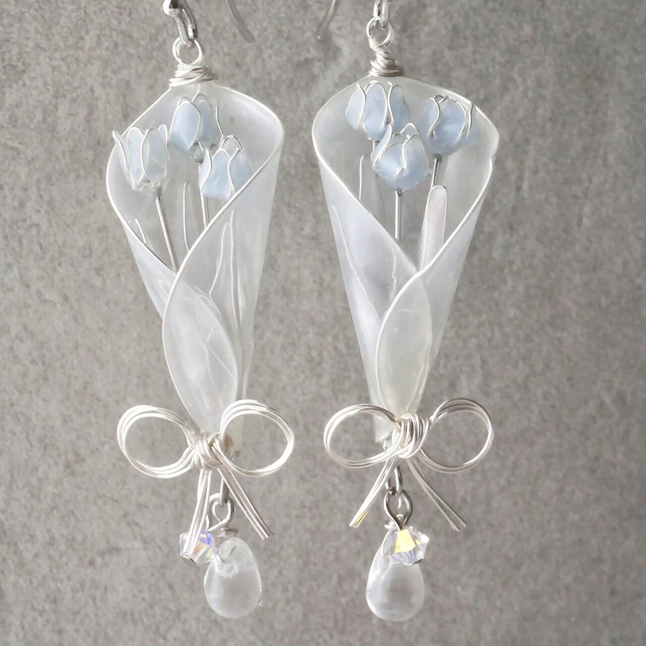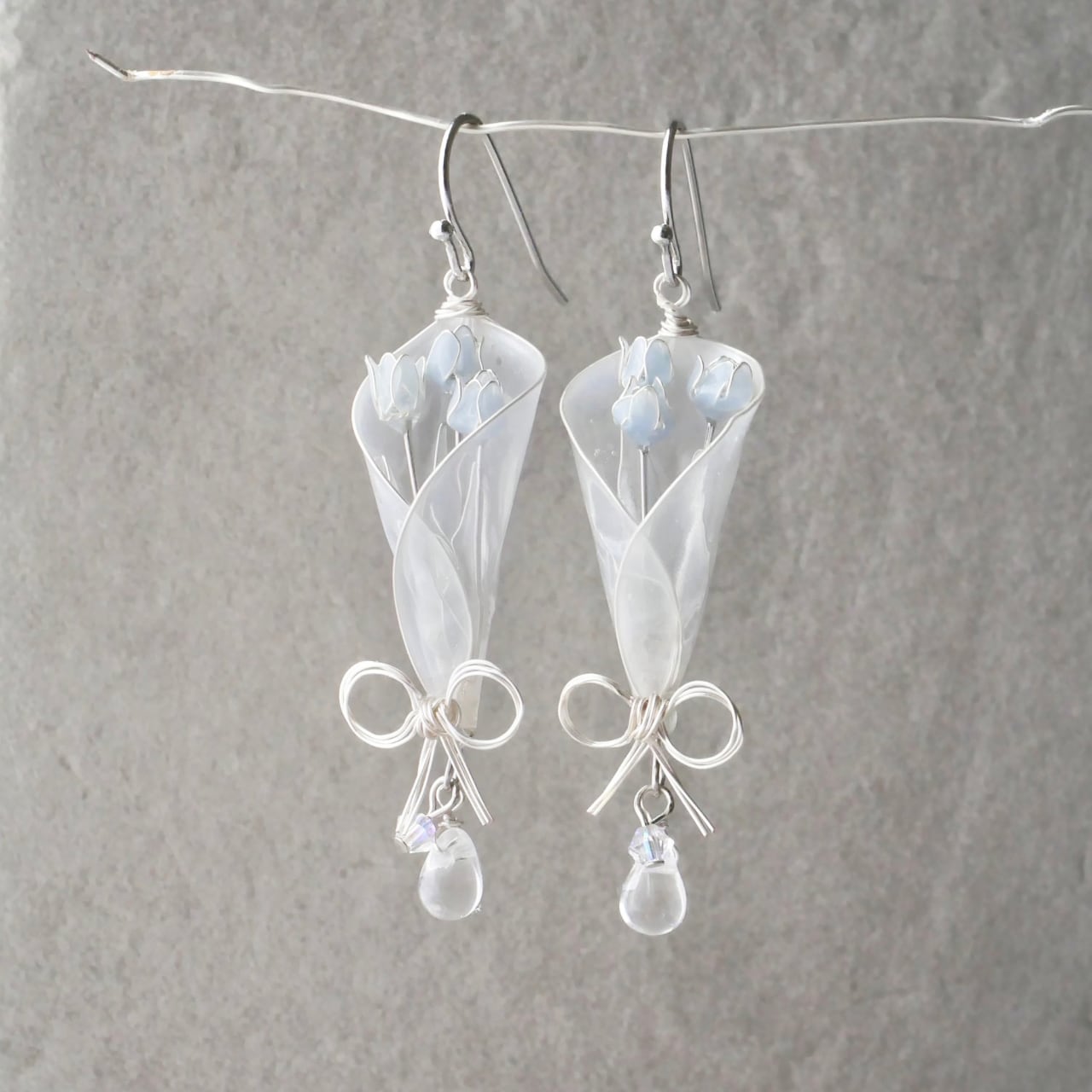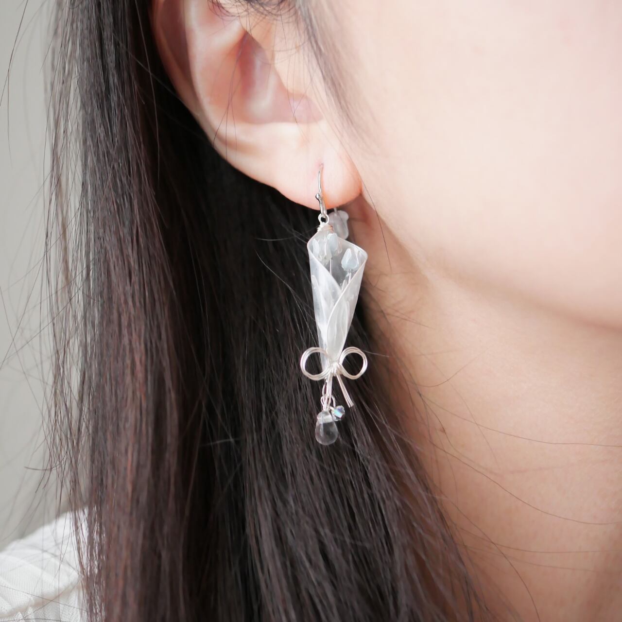 水色チューリップbouquet 花束 イヤリング/ピアス ディップアート ディップフラワー マニキュアフラワー